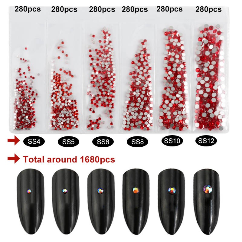 1680-piece crystal rhinestone set in 6 sizes Using Neon coral: