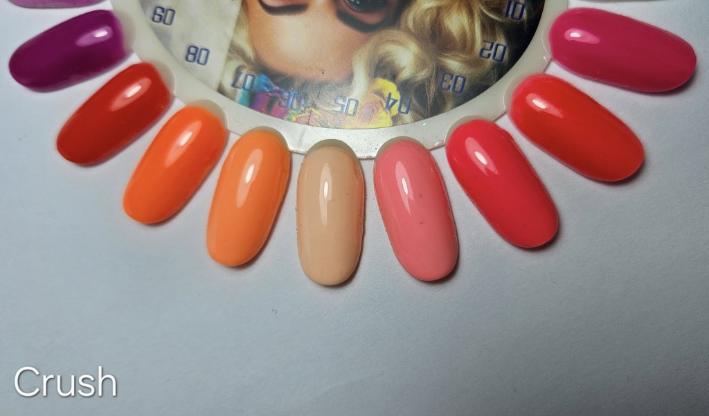 The Crush gel polish range offers a stunning selection of 16 special spring shades, mainly with neon colours, including neon pink, peach and bright green colours, as well as the brilliant colours of spring flowers. This collection is the perfect choice for those who want to lift their nails during the spring period.
